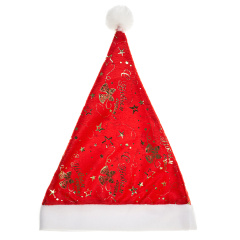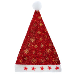 Колпак Новогодний, Красные звезды и снежинки, со светодиодами, Красный/Золото, 28*38 см, 1 шт.
