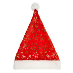 Колпак Новогодний, Пушистые снежинки, Красный/Золото, 28*38 см, 1 шт.